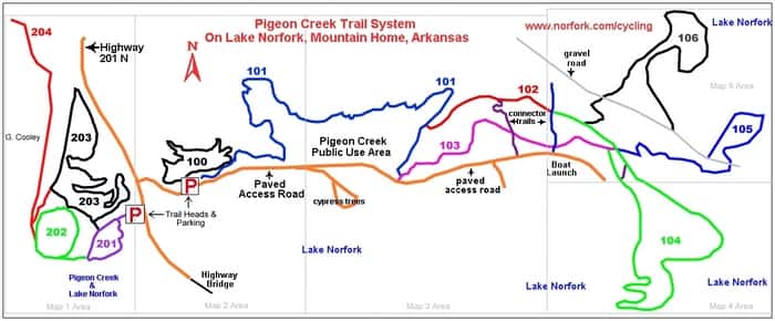 Another trail located on Corps’ property is the Pigeon Creek Trail system, located at Pigeon Creek Park on State Highway 201 North.