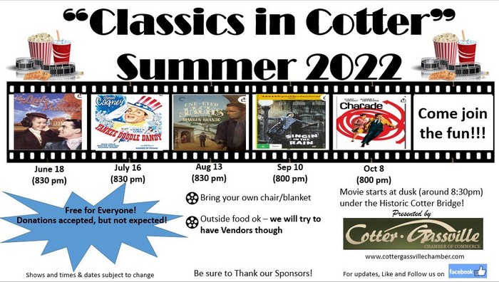 An event that started two years ago during the COVID-19 pandemic will pick back up this Saturday night. Classics in Cotter will show the first of five classic films this summer under the historic R.M. Ruthven Bridge starting at 8:30.