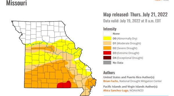The map shows the rest of north central Arkansas and southern Missouri in the severe drought category.