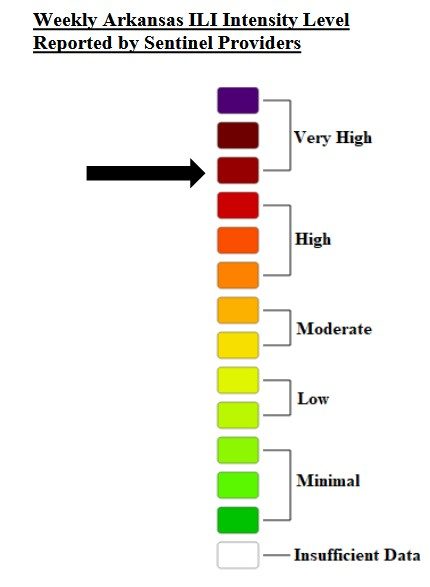 The Arkansas Department of Health’s (ADH) weekly respiratory disease report released Friday shows the intensity level is still very high and school absenteeism rates in the area have dropped, but there were a larger number of new deaths reported in the state this past week.