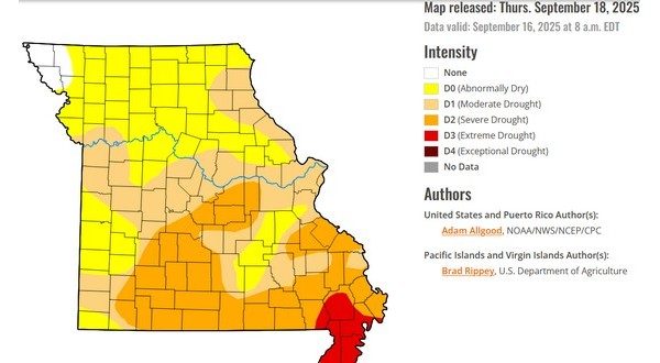 In southern Missouri, Ozark, Douglas, Howell and Taney counties are all listed in severe drought.