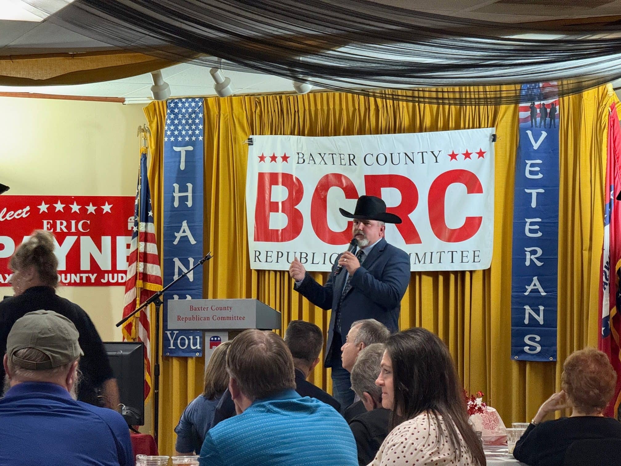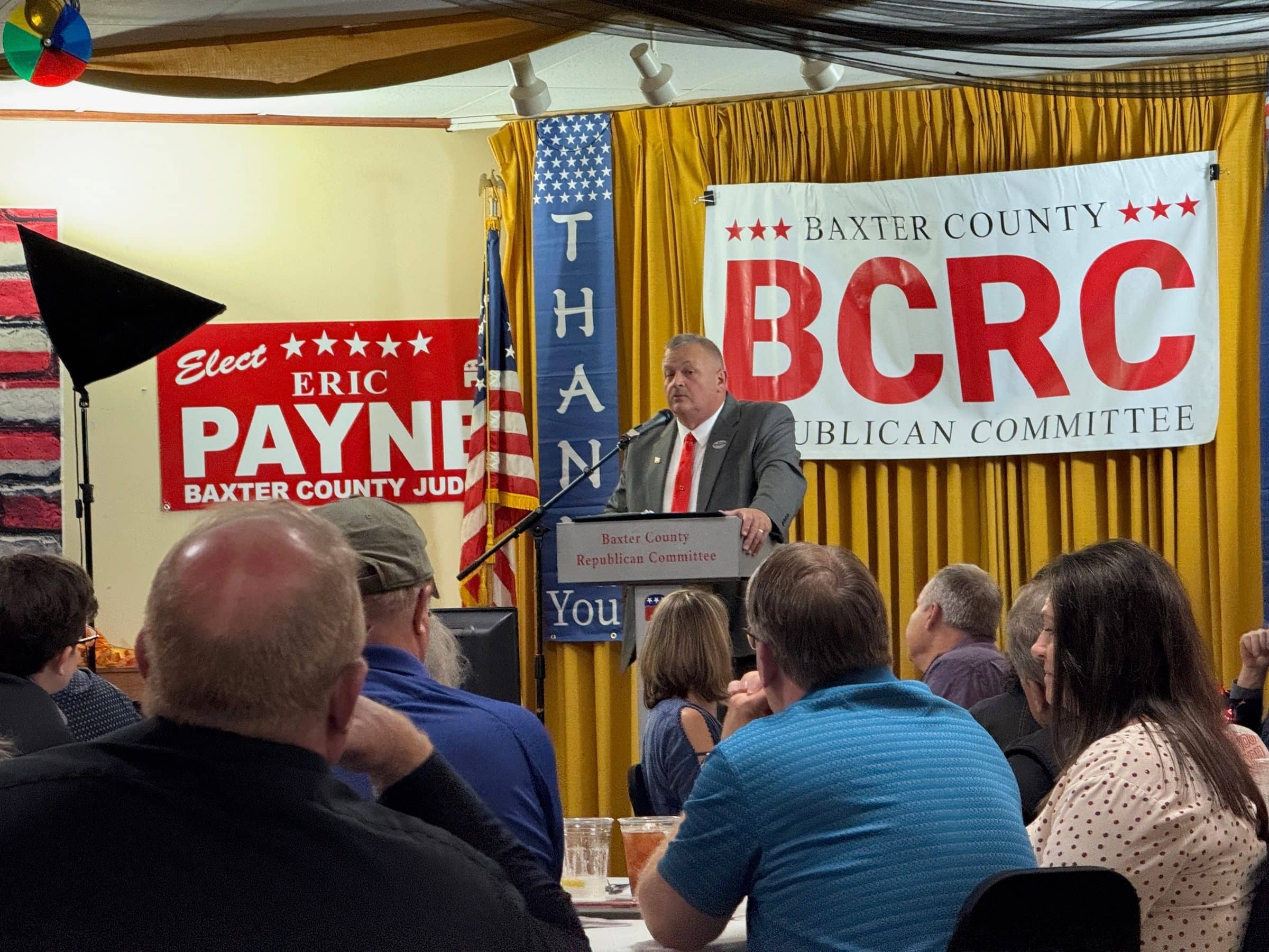 A Meet the Candidates dinner, hosted by the Baxter County Republicans at the Elks Lodge, brought out nearly every Republican running for county office, along with a large crowd of residents. State candidates for Secretary of State and Land Commissioner were also in attendance and given time to speak.