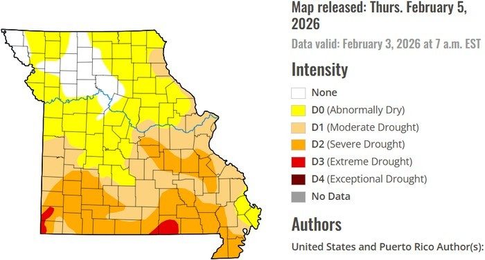 The northwestern corner of Howell County and the rest of Douglas County are in the moderate drought category.