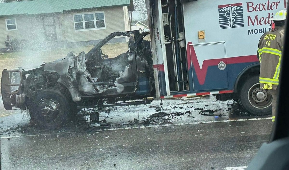 Baxter Health tells KTLO News that they are grateful no one was injured. There was no patient in the unit and it was not in service. They report it was an older ambulance that was on it’s way to the shop. The member of the ambulance services team tried to extinguish the flames with a fire extinguisher but at that point the fire was already too hot and uncontrollable. The hospital reports the ambulance was a total loss.