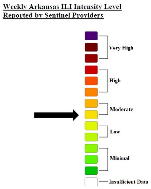 Flu cases in Arkansas showed a drop this past week in Arkansas according to the latest numbers released from the Arkansas Department of Health (ADH) and five new deaths have been reported in the state. The Viral Respiratory Diseases Weekly Report released Thursday, which reflects numbers for the week ending March 14, shows the level is at a moderate level, or a six out of a scale of 13. Last week, the level was high, or an eight out of 13.