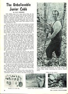 At just 22 years old, Junior Cobb was profiled in TV Guide as a “real hillbilly” reviewer of the hit show The Beverly Hillbillies. Junior had never even seen the show until then. The nearest television was four miles away, and since he couldn’t read, he hadn’t followed any of the publicity about the Clampetts.