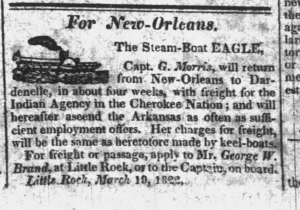 As we focus on steamboats specifically this week, we will take a look at the first steamboat expedition in Arkansas, the Eagle.
