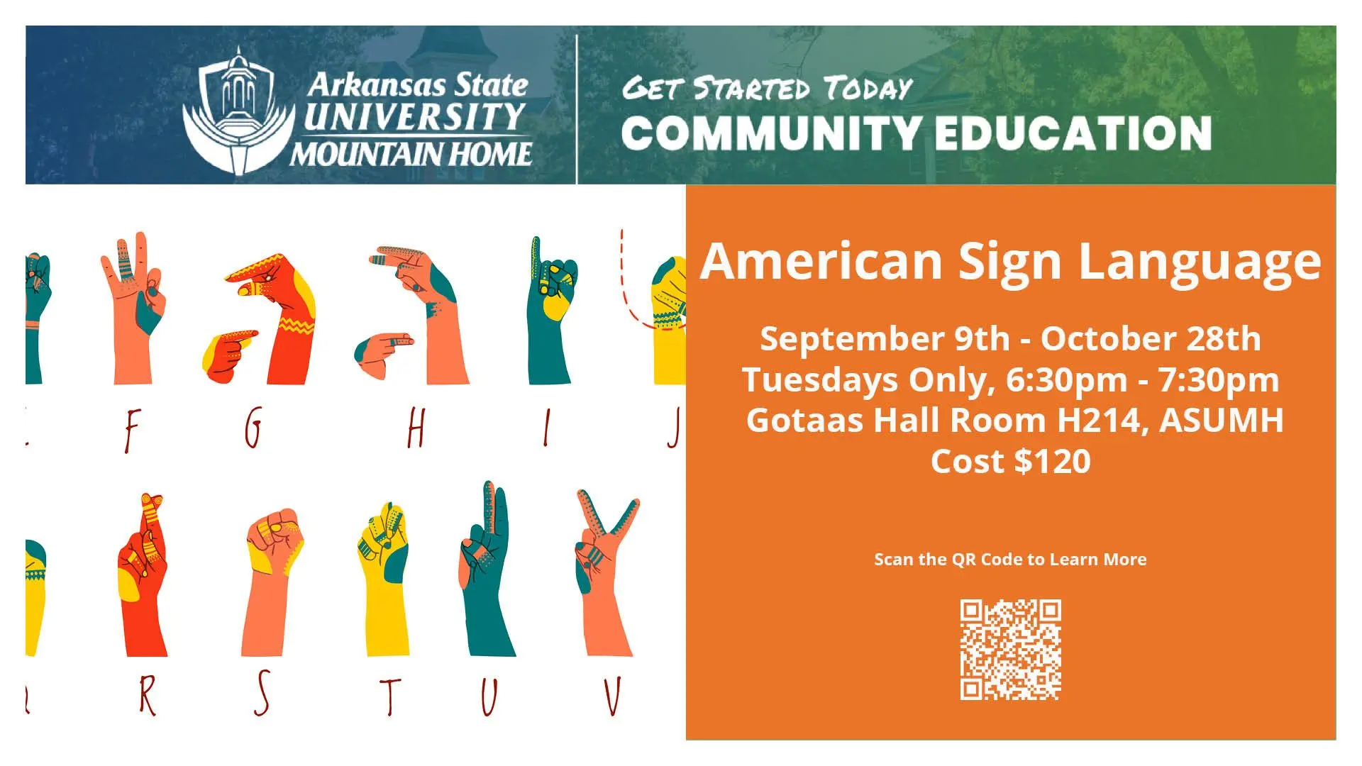Are you interested in learning Sign Language? This course is designed for students who wish to expand their knowledge in conversing with people who are deaf. Includes receptive and expressive skill building, fingerspelling, Deaf Culture, conversational signs and time in ASL. Classifiers, locations, temporal aspect, videos with Deaf Signers, and guest speakers.