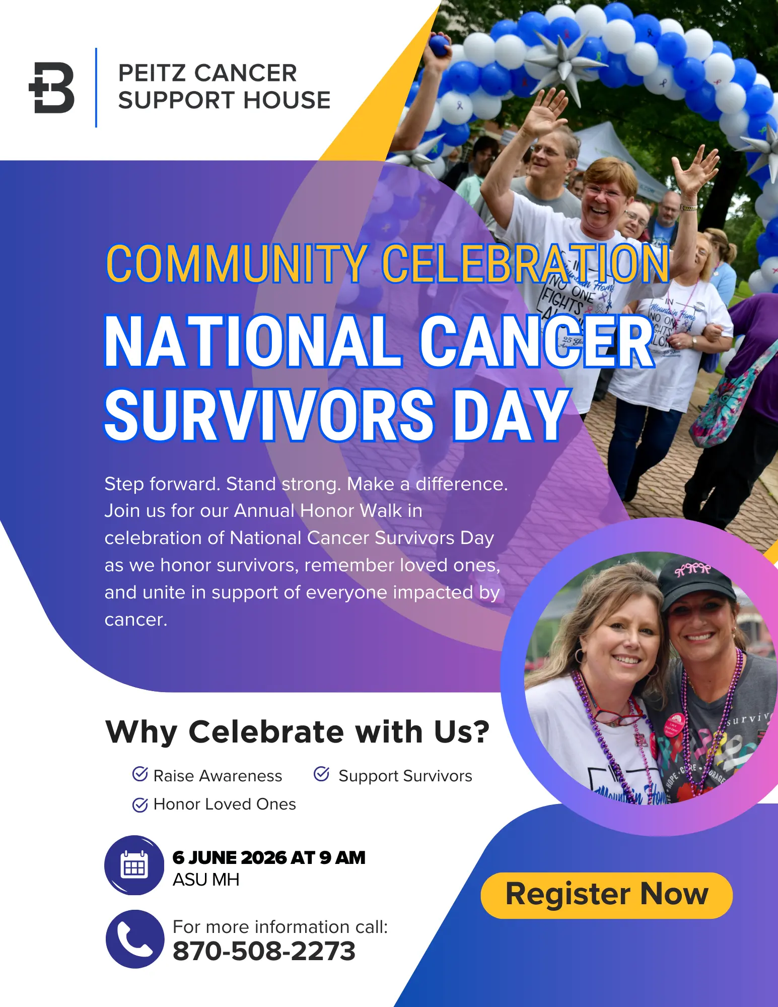 Join us for a National Cancer Survivors Day Celebration—a free community event honoring cancer survivors and their loved ones. Bring your friends and family to celebrate strength, hope, and resilience.