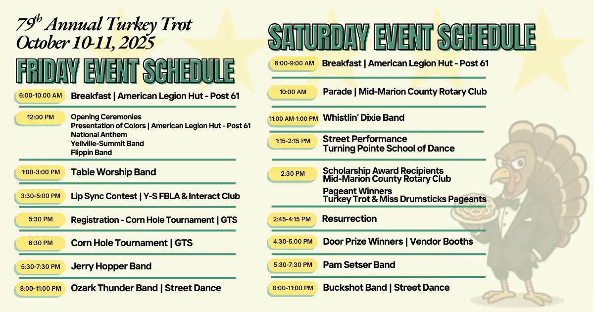 Join us for one of Arkansas’s most beloved and quirky traditions – the Turkey Trot Festival! This year’s theme: License to Gobble! Expect a weekend full of live music and entertainment, local vendors and crafts a parade through downtown, delicious food, festival merch, and more!