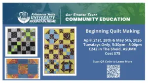 Students will learn basic quilt making skills by making 3 to 4 traditional blocks that they may use in their choice of the following: Use single blocks in their choice of small projects. Use all blocks in a table runner top. Make more than one of each block in a small quilt top. *Supplies students are to bring to class: Cotton fabric (you may bring your own fabric or if you would like fabric to be provided, please bring $25…